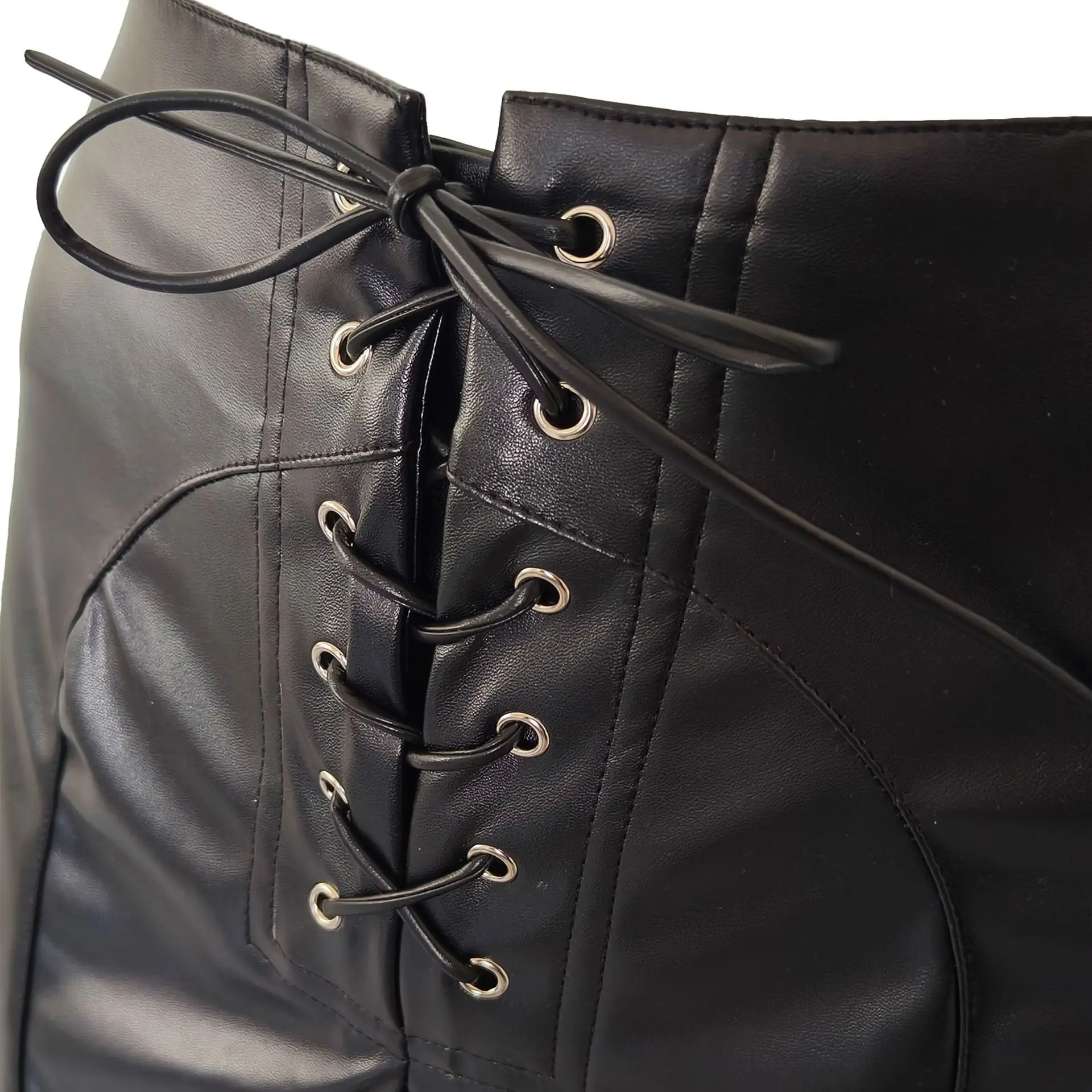 GX0567 Fashion 2024 Ladies Personalized PU Leather Casual Pant Unique Lace-Up Women's Trouser Retro Cargo Pants